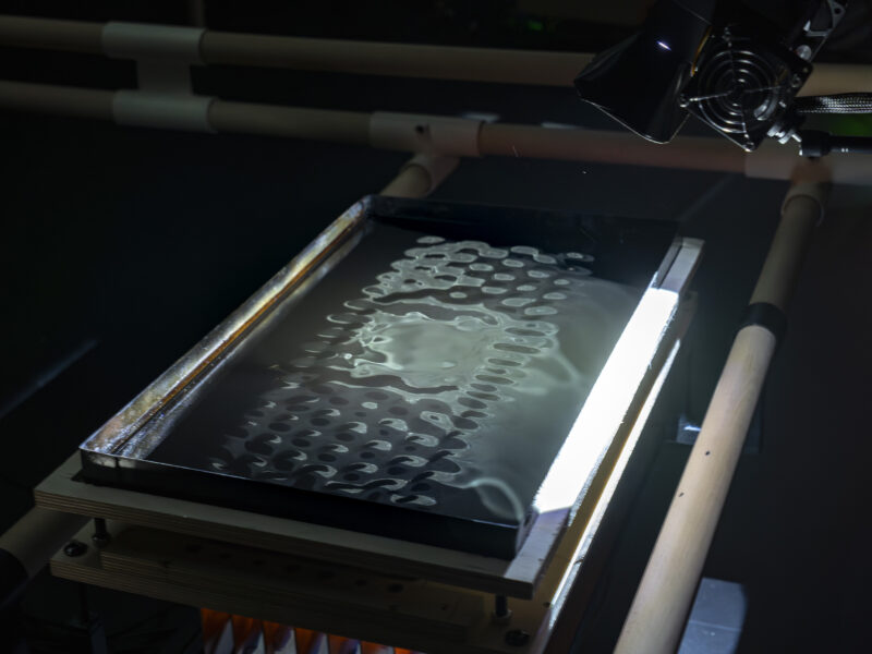 Sa démarche est low tech et post numérique, elle se situe dans une écologie où les matériaux sont proches de leur fonction, où le processus de fabrication fait partie de la recherche. La technicité est devenue omniprésente dans notre société. Restituer l’étonnement et la magie des phénomènes naturels nous replaçant ainsi dans un tout, où le vide n’est pas rien, le temps universel n’existe pas.